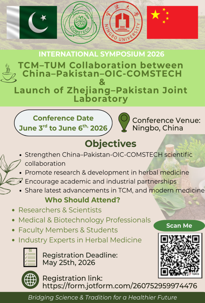 INTERNATIONAL SYMPOSIUM 2026 TCM–TUM Collaboration between China–Pakistan–OIC-COMSTECH & Launch of Zhejiang–Pakistan Joint Laboratory